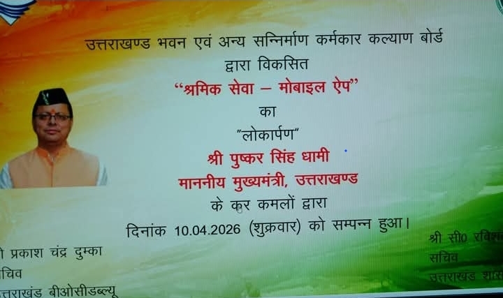 देहरादून। मुख्यमंत्री श्री पुष्कर सिंह धामी ने उत्तराखण्ड भवन एवं अन्य सन्निर्माण कर्मकार कल्याण बोर्ड द्वारा विकसित श्रमिक सेवा मोबाइल एप का लोकार्पण करने के साथ ही 8,005 श्रमिकों के खाते में ₹17 करोड़ से अधिक राशि का डीबीटी के माध्यम से हस्तातंरण किया।