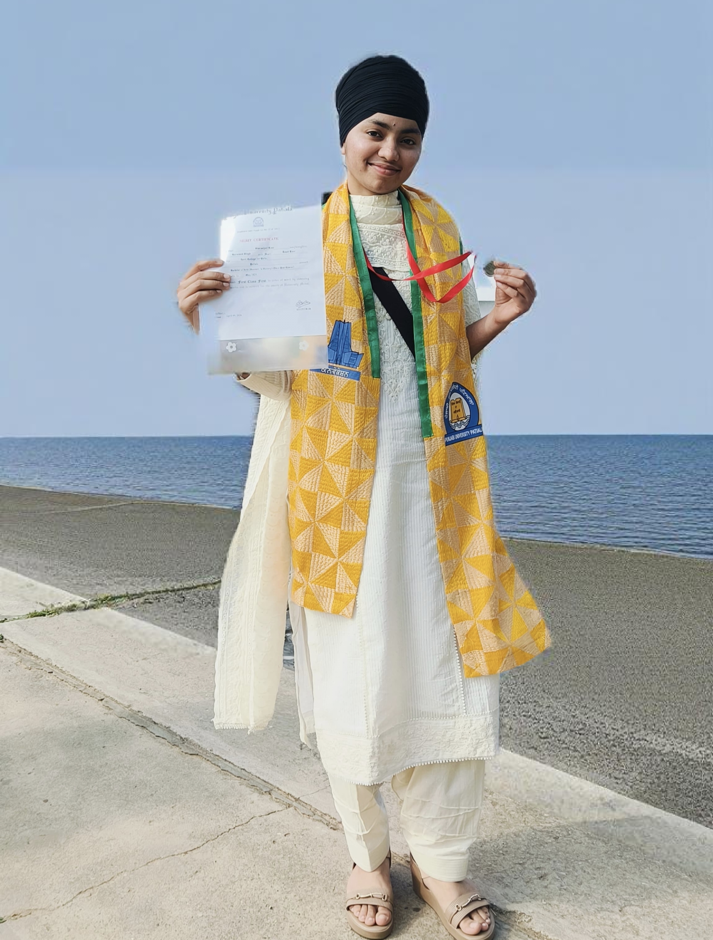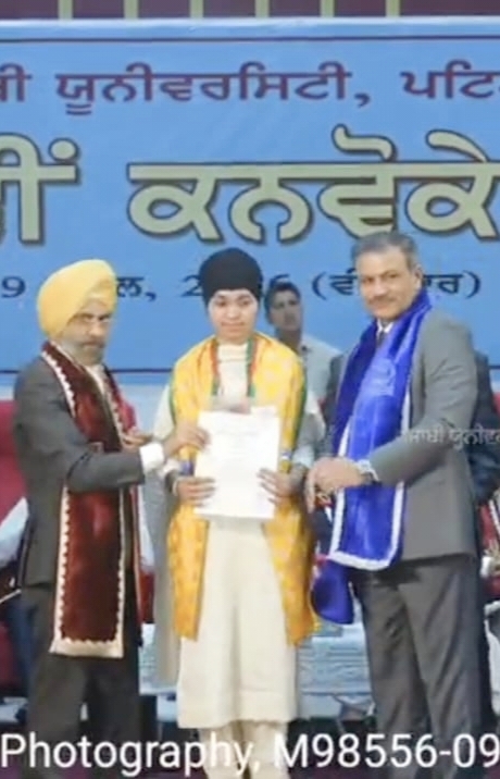 ਸਿਮਰਨਜੀਤ ਕੌਰ ਪੁੱਤਰੀ ਗੁਰਸੇਵਕ ਸਿੰਘ ਨੇ ਹਿਸਟਰੀ ਆਨਰ ਵਿੱਚ ਮੈਡਲ ਅਤੇ ਮੈਰਿਟ ਸਰਟੀਫਿਕੇਟ ਪ੍ਰਾਪਤ ਕੀਤਾ