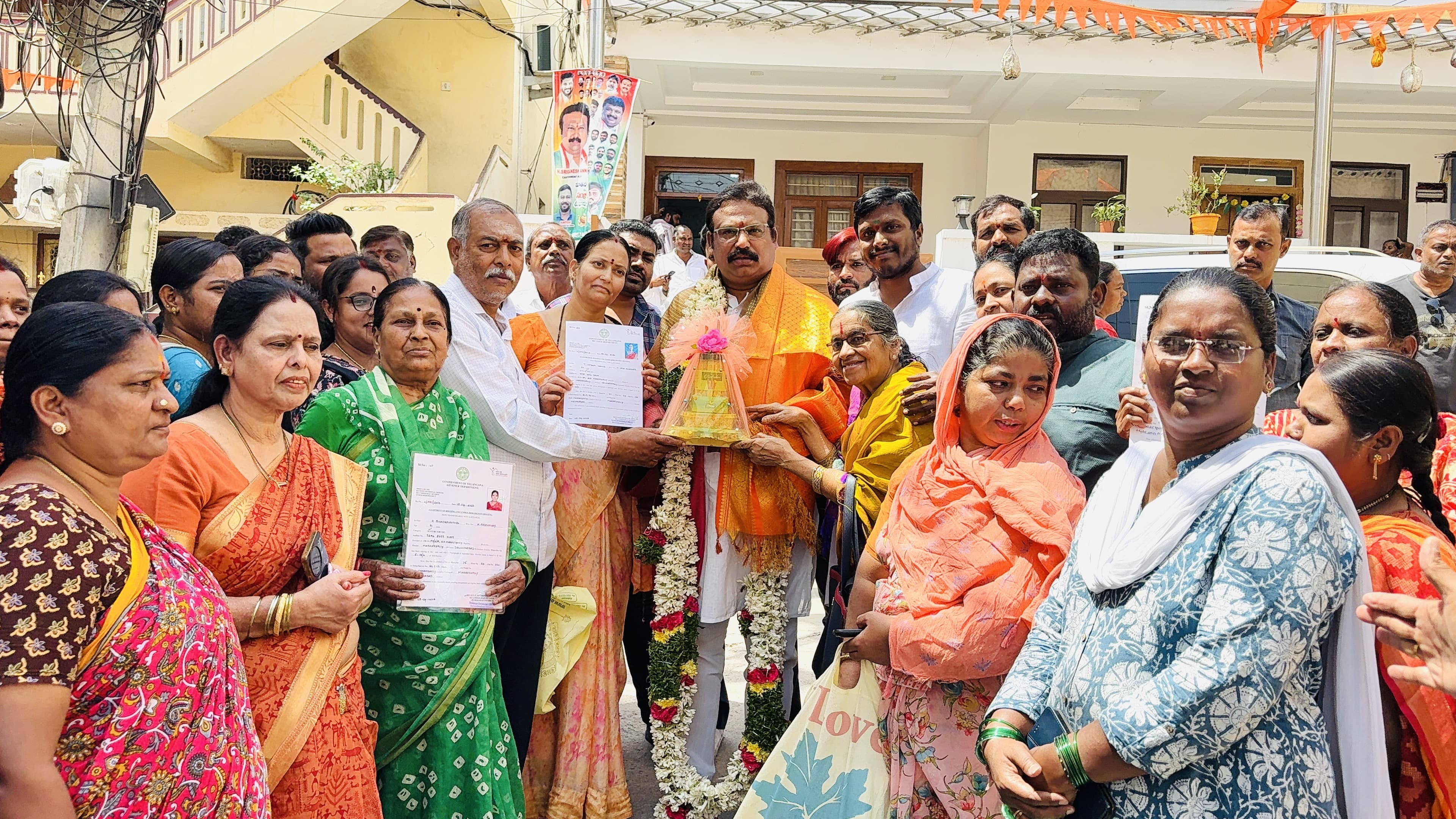 మారేడ్ పల్లి ప్రాంతంలో నిర్మించిన డబుల్ బెడ్రూం ఇళ్ళ నిర్మాణానికి తమ స్వంత ఇళ్ళను ఇచ్చి ఎన్నో ఏళ్ళుగా కిరాయి ఇళ్ళలో ఉంటూ అద్దెలు కట్టలేక నానా అవస్థలు పడుతూ తీవ్ర ఇబ్బందుల్లో ఉన్న అ కుటుంబాలకు న్యాయం చేయాలనే ఉద్దేశంతో ఎమ్మెల్యేగా గెలిచినప్పటినుంచి తాను అధికారులతో నిత్యం మాట్లాడుతూ, గౌరవ ముఖ్యమంత్రి , రెవెన్యూ, గృహ నిర్మాణ శాఖల మంత్రి వర్యులు, ఇంఛార్జ్ మంత్రి వర్యుల దృష్టికి పలుమార్లు తీసుకువెళ్లి రెండు రోజుల క్రితం వారికి పట్టాలను అందించగలిగామని అన్నారు.ఈ ఇళ్ళు మీ ఆస్తి అని, మీ కన్నీళ్ళను చూసిన కాంగ్రెస్ పార్టీ అధికారంలోకి వచ్చిన వెంటనే ఈ సమస్యపై దృష్టి కేంద్రీకరించి పరిష్కరించిందని ,మీ కళ్ళల్లో ఆనందమే తన ధ్యేయమని ఎమ్మెల్యే శ్రీ గణేష్ వారితో చెప్పారు.