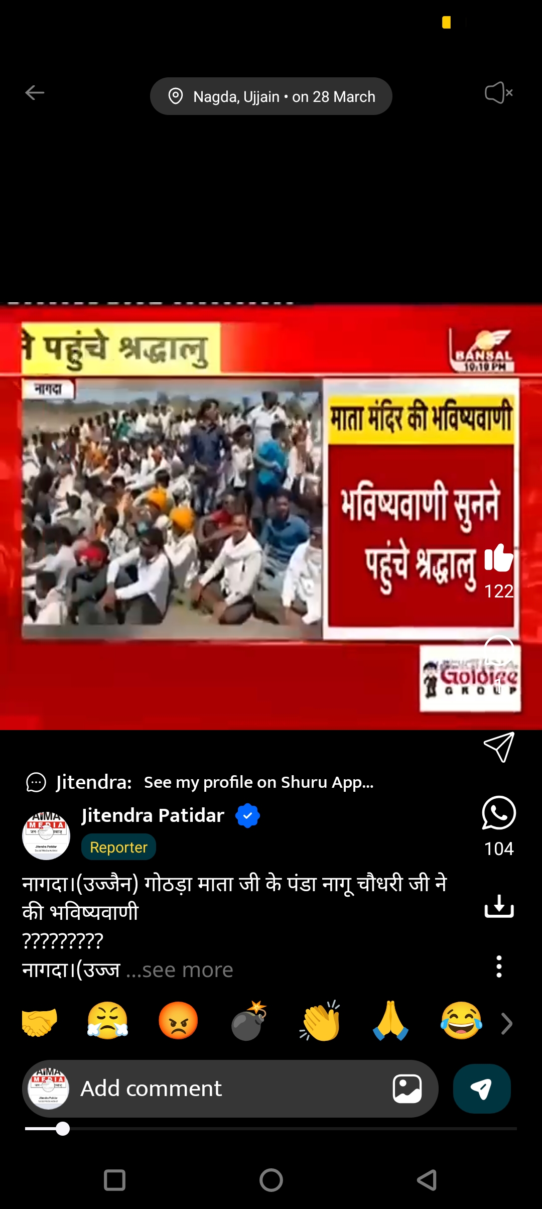 नागदा।(उज्जैन) गोठड़ा माता जी के पंडा नागू चौधरी जी ने की भविष्यवाणी प्रशासनिक अनुमान के अनुसार इस बार भविष्यवाणी सुनने ज