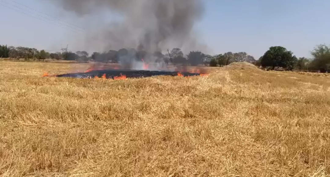 मड़िहान (मिर्जापुर): शॉर्ट सर्किट से गेहूं के खेत में लगी भीषण आग, फायर ब्रिगेड देर से पहुंची