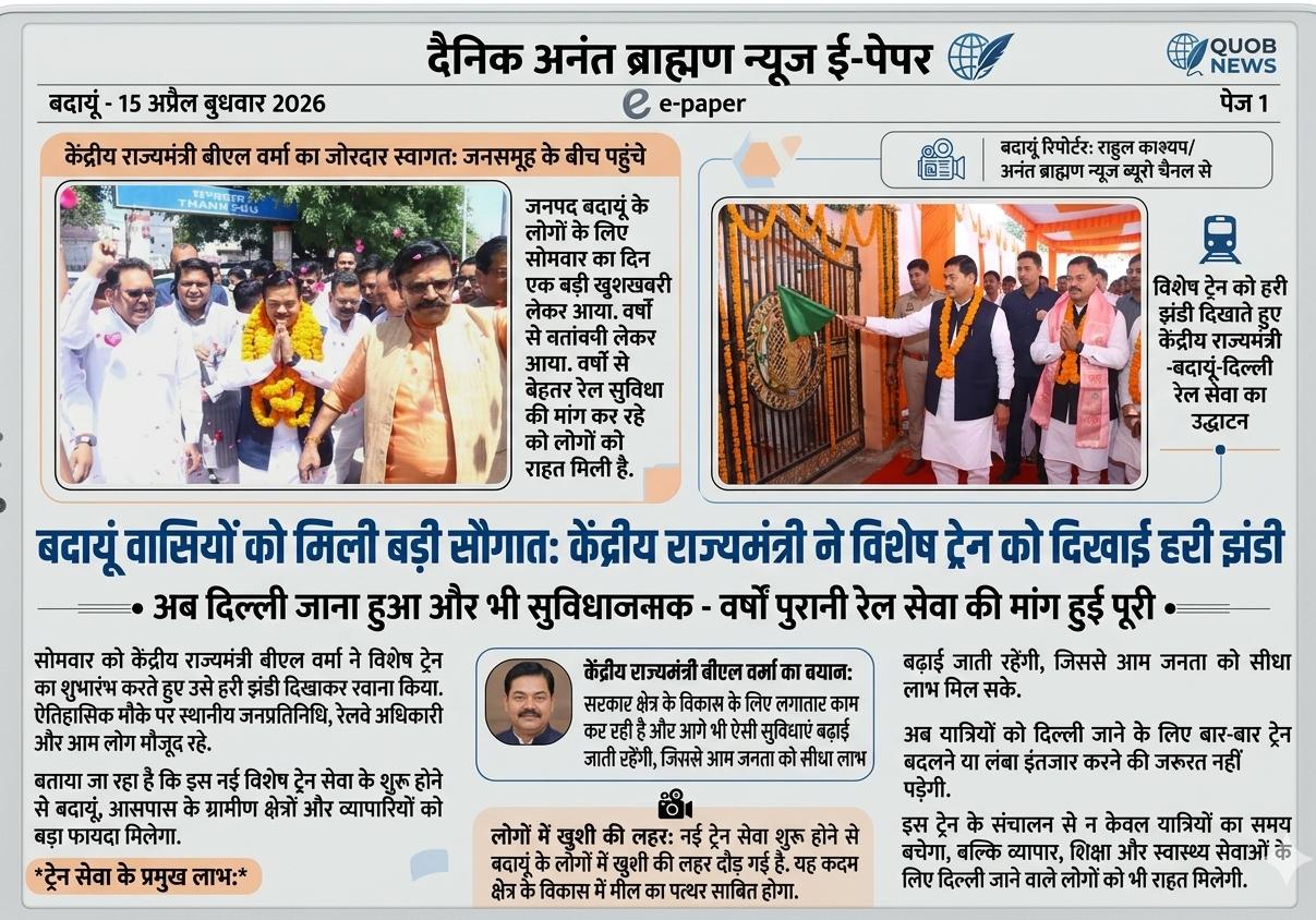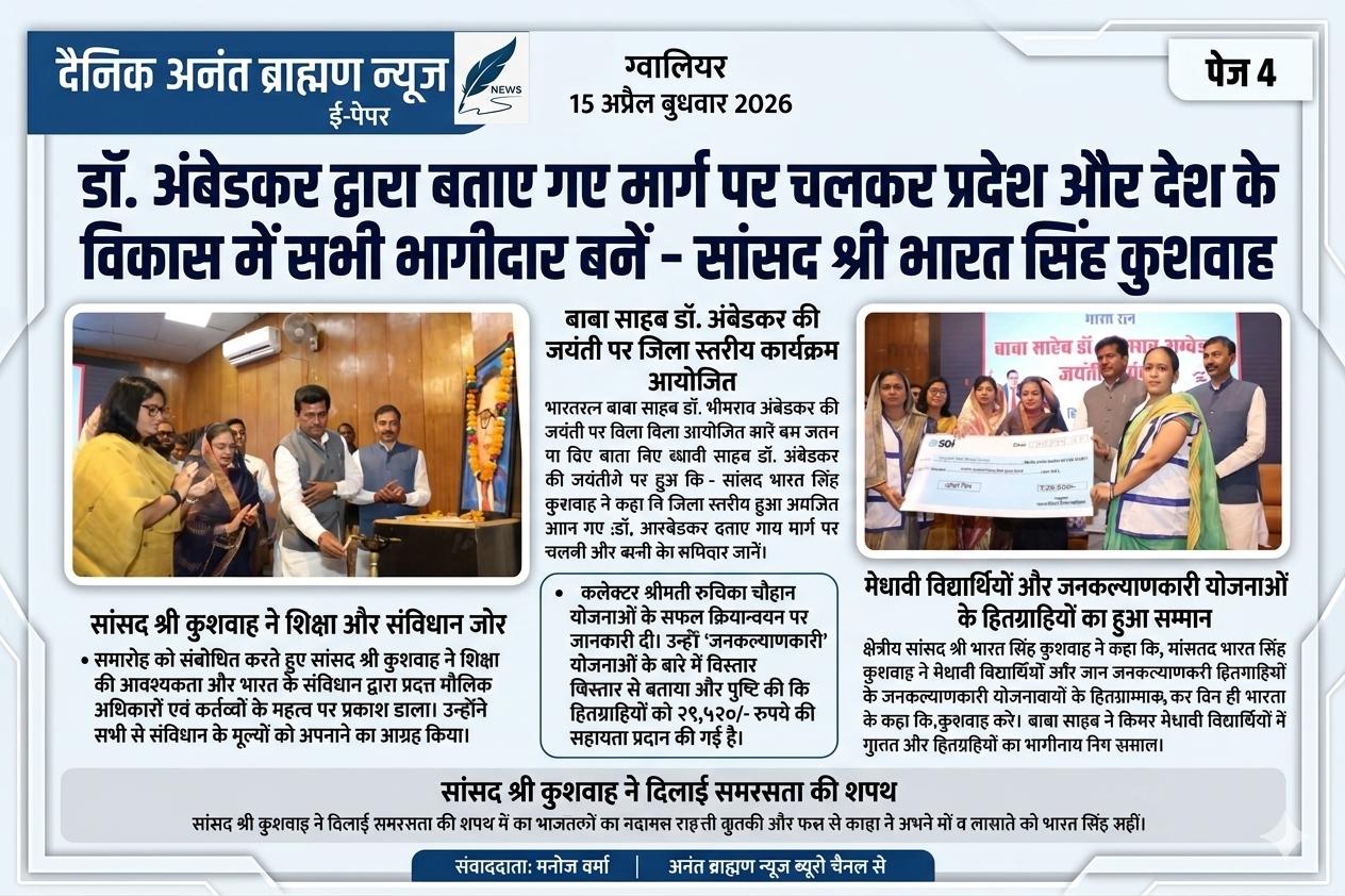 दैनिक अनंत ब्राह्मण न्यूज ई पेपर डिजिटल ई पेपर 15 बुधवार अप्रैल 2026