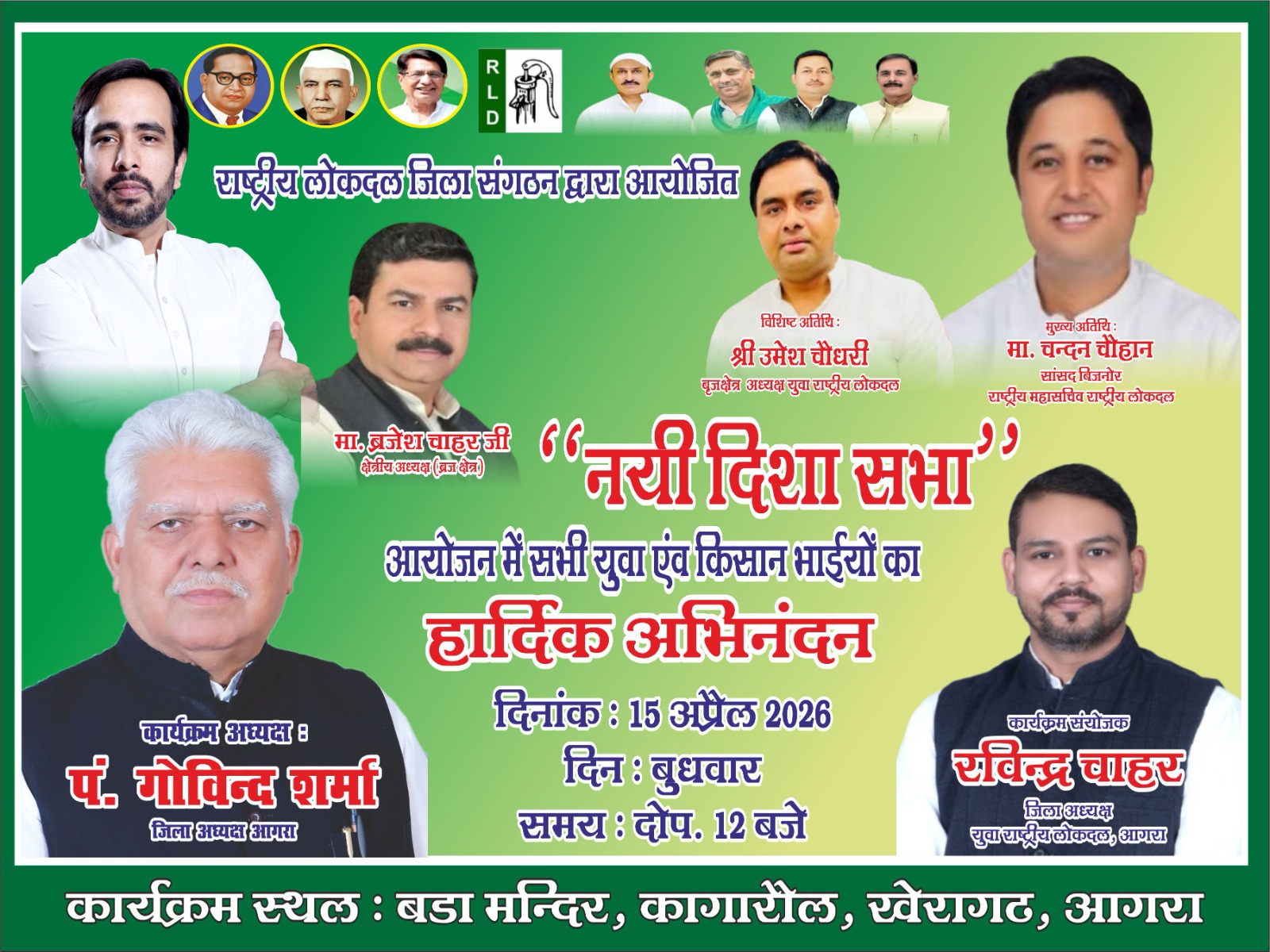 आज दिनांक -15-04-2026 रो कागारौल खेरागढ आगरा में राष्ट्रीय लोकदल जिला संगठन द्वारा “ नई दिशा सभा का आयोजन किया गया
