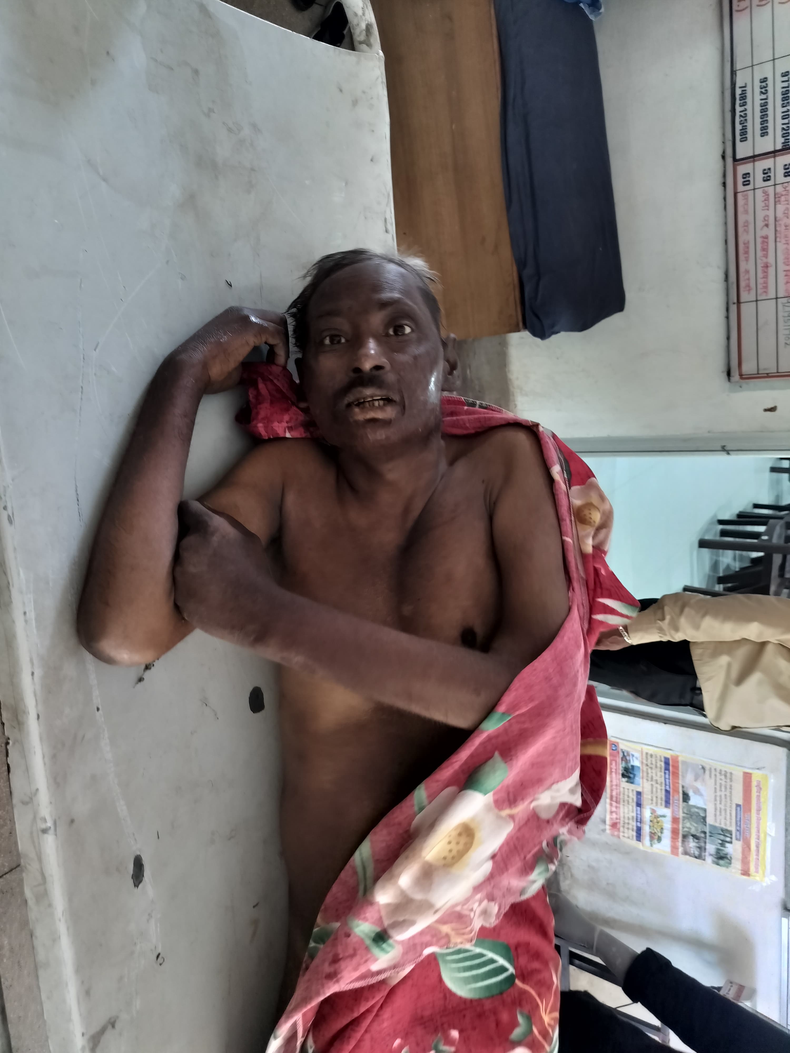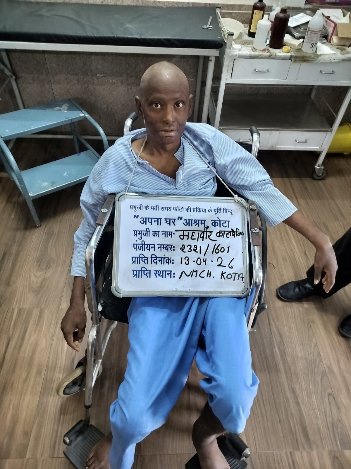 न्यू मेडिकल कॉलेज के सामने पड़े एक लावारिस मानसिक विमंदित पुरुष प्रभु जी को अपना घर आश्रम की रेस्क्यू टीम द्वारा अपना घर में आश्रय दिया गया।सुनील नाम के एक व्यक्ति द्वारा प्राप्त सूचना मोबाइल पर सूचन दी कि न्यू मेडिकल कॉलेज के सामने एक लावारिस मानसिक विमंदित व्यक्ति नग्नावस्था में पड़ा है तो अपना घर की रेस्क्यू टीम तुरन्त न्यू मेडिकल कॉलेज पहुंची तो पाया कि एक व्यक्ति नंगावस्था में एक चादर ओढ़े पड़ा था ।रेस्क्यू टीम द्वारा पहले उसे कपड़े पहनाए और फिर अपना घर आश्रम में आश्रय देकर उसकी चिकित्सा सेवा प्रारंभ कर दी ।यह व्यक्ति अपना नाम महावीर बता रहा है लेकिन अपना पता और परिजनों का नाम बताने में असमर्थ है ।साँवले रंग के लगभग 55वर्षीय इस व्यक्ति की प्राथमिक जाँच के बाद अपना घर आश्रम द्वारा सेवा प्रारंभ कर दी गई है ।
