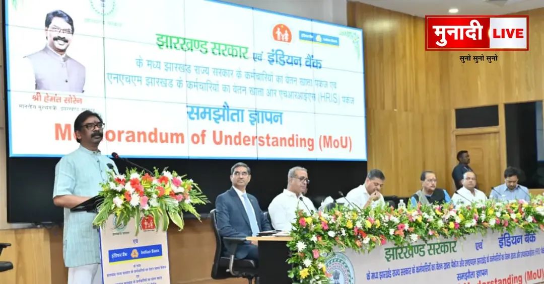मुख्यमंत्री हेमंत सोरेन की मौजूदगी में झारखंड सरकार और इंडियन बैंक के बीच बड़ा समझौता। NHM के हजारों कर्मियों को मिलेगा विशेष सैलरी पैकेज और बीमा। विस्तृत रिपोर्ट।