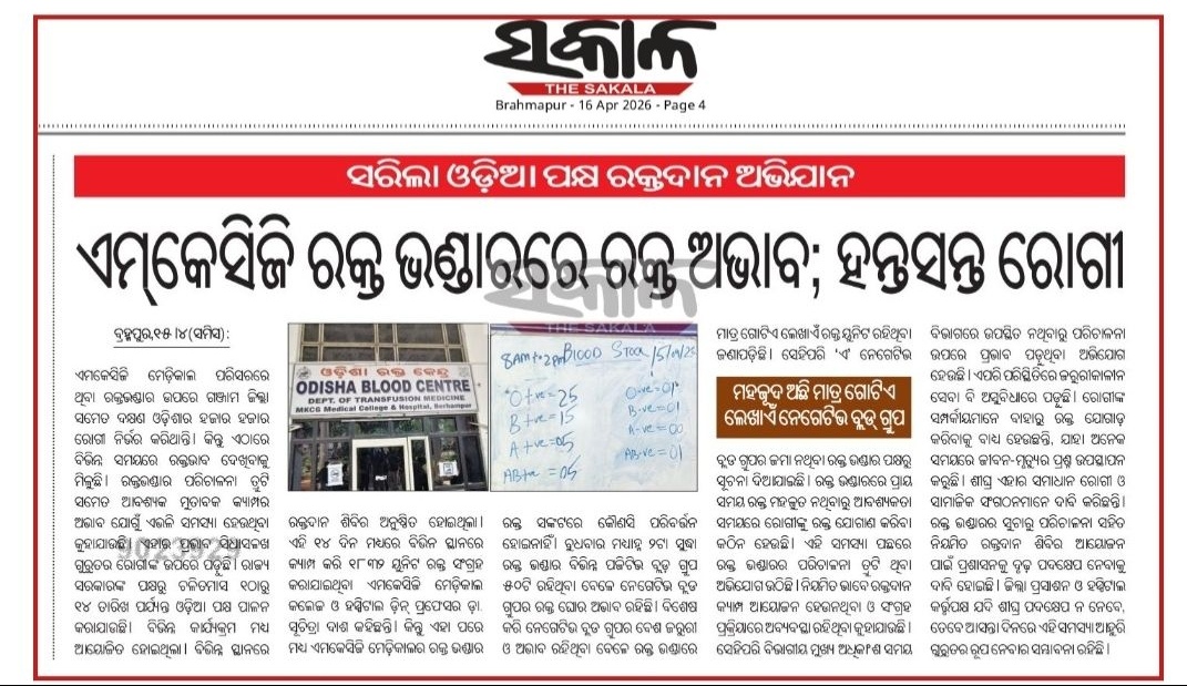 ବ୍ରହ୍ମପୁର ଏମ୍.କେ.ସିଜିରେ ରକ୍ତଭଣ୍ଡାରରେ ରକ୍ତ ଅଭାବ ଯୋଗୁଁ ରୋଗୀମାନେ ହନ୍ତସନ୍ତ।