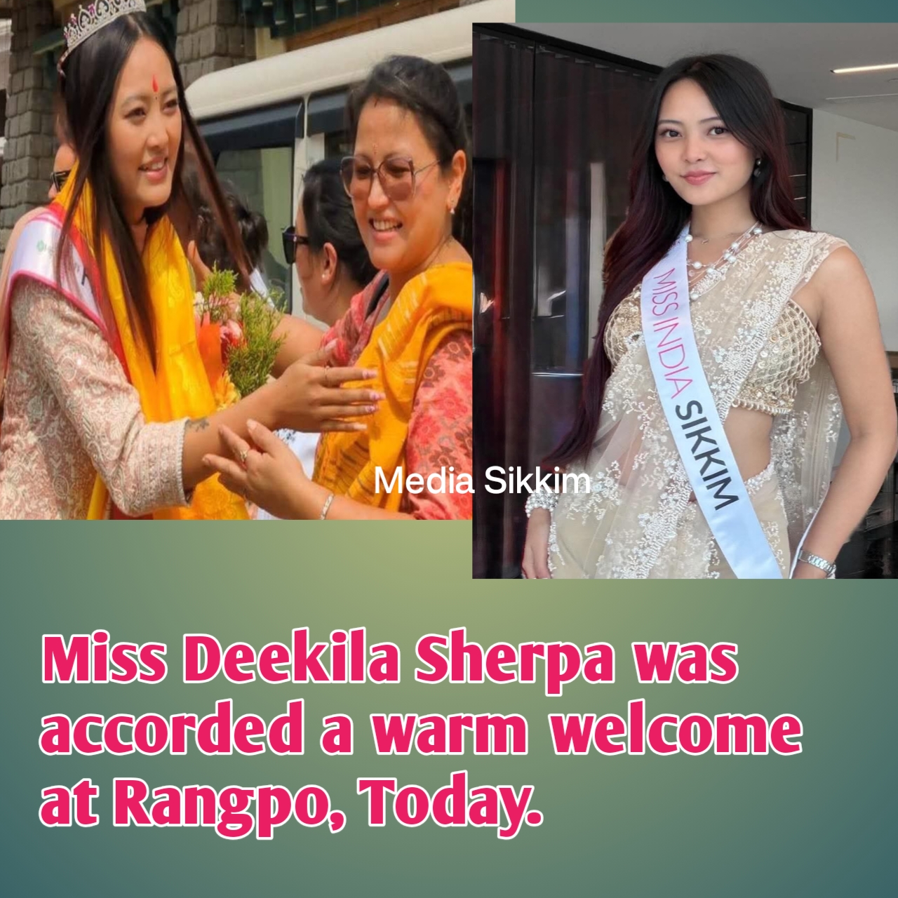 सिक्किम के लिए गर्व का क्षण उस समय देखने को मिला जब Deekila Sherpa, जिन्होंने हाल ही में Femina Miss India में मिस नॉर्थ ईस्ट और मल्टीमीडिया अवॉर्ड का खिताब जीता है, का मंगलवार को Rangpo में भव्य स्वागत किया गया।