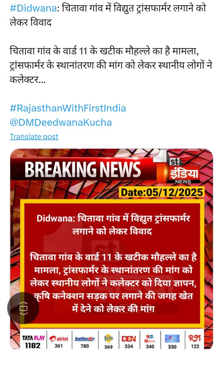 Mahesh Kumar Nagaur, Rajasthan (RJ) AIMAMEDIA 25/12/2025 05:41 PM Report 11 kv line aam road per lgate huye.... read more 16 0 comment